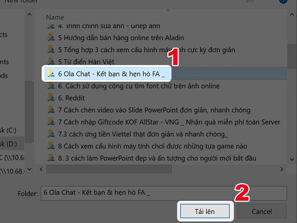 Còn ở mục Tải thư mục lên, bạn bấm vào Chọn thư mục muốn tải, rồi chọn tiếp Tải lên.