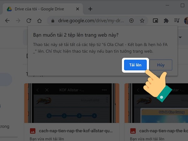 Cuối cùng, nhấn chọn Tải lên để Xác nhận tải các tệp trong thư mục bạn đã chọn là xong.