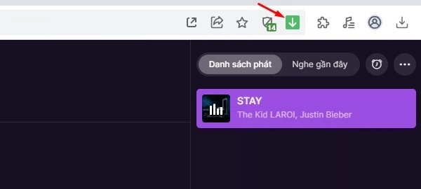 Bước 5: Sau đó, bạn nhấn vào nút tải xuống hình mũi tên hướng xuống màu xanh lá trên thanh địa chỉ bên góc phải phía trên để bắt đầu tải nhạc Zing MP3 bản quyền về máy.
