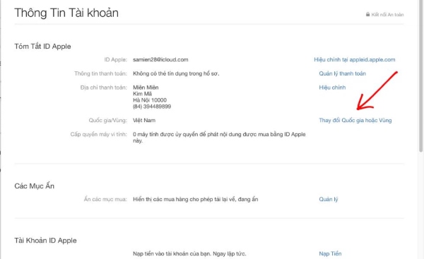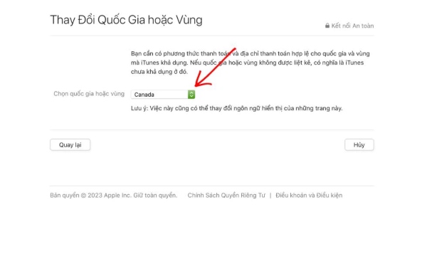 Bước 2: Nhấn vào Thay đổi Quốc gia hoặc Vùng.