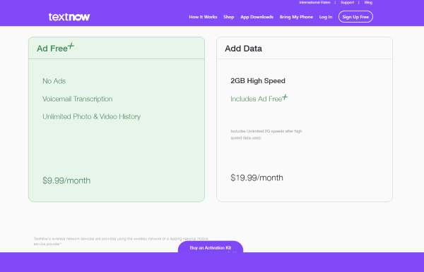 - Đa dạng gói cước và tính năng mở rộng: TextNow cung cấp một số gói cước trả phí để giúp tăng trải nghiệm người dùng với các dịch vụ mở rộng như gọi thoại quốc tế, không quảng cáo,…