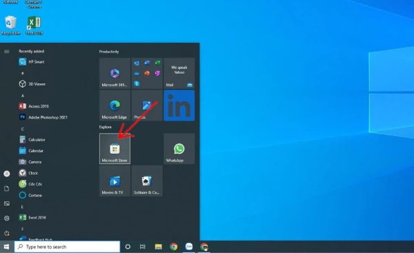 Bước 1: Mở ứng dụng Microsoft Store trên máy tính bằng cách bấm vào biểu tượng Windows tại góc dưới bên trái màn hình.