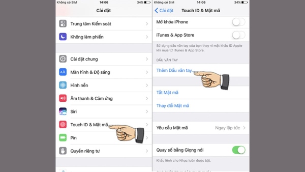 Trong trường hợp người dùng bạn chưa cài đặt Touch ID cho iPhone thì có thể thực hiện bằng cách sau: Mở vào Cài đặt trên điện thoại iPhone > chọn Touch ID & mật mã > tiến hành nhập mật khẩu > chọn Thêm dấu vân tay. Tiếp tục thực hiện theo hướng dẫn trên iPhone để thiết lập dấu vân tay rồi nhấn Tiếp tục.