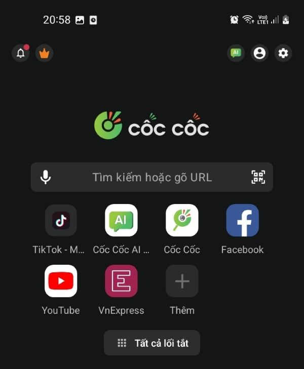 Mở trình duyệt Cốc Cốc trên điện thoại lên