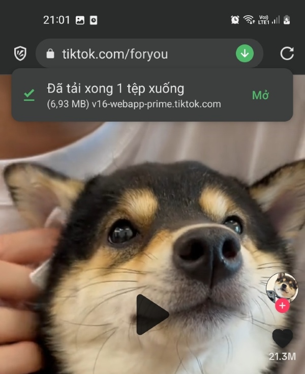 Sau đó, video TikTok sẽ được tải về điện thoại và không có logo theo mặc định từ trình duyệt tải video Cốc Cốc. Bạn có thể nhấn Mở để xem ngay video vừa tải về hoặc xem video được lưu tại thư viện hình ảnh trên điện thoại.