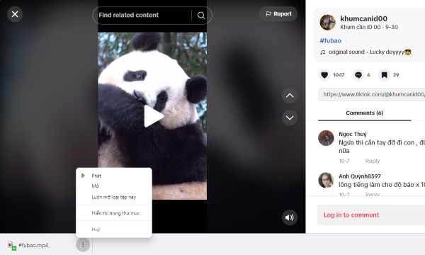 Mở video TikTok cần tải về máy tính