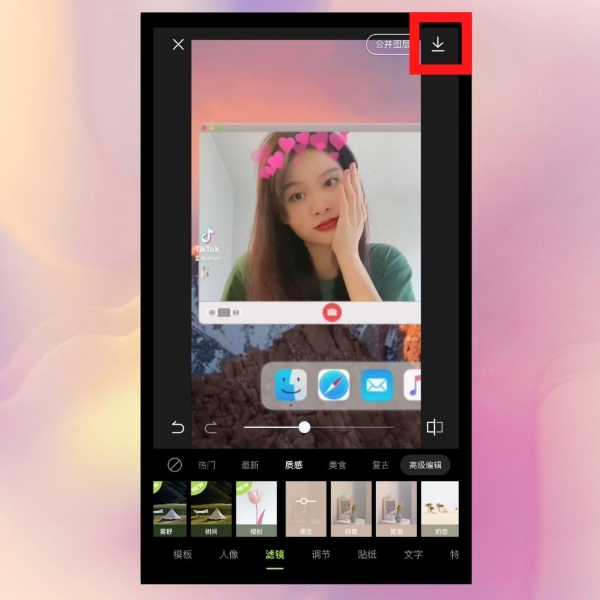 Bước 5: Sau khi hoàn thành chỉnh ảnh xong, bạn nhấn nút mũi tên xuống ở góc trên bên phải để lưu ảnh đã chỉnh sửa về máy.