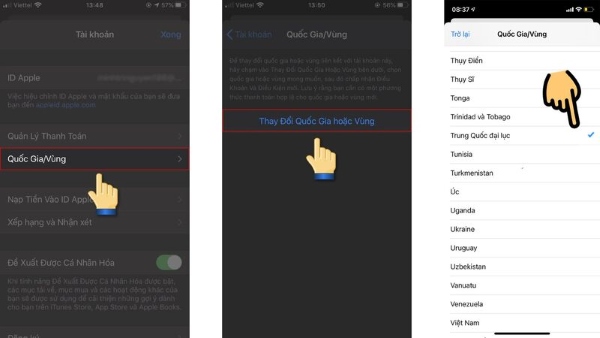 Bước 3: Chọn Thay Đổi Quốc Gia hoặc Vùng.
