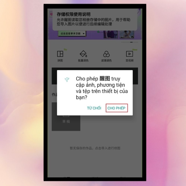 Bước 2: Cho phép truy cập, phương tiện và tệp trên thiết bị.