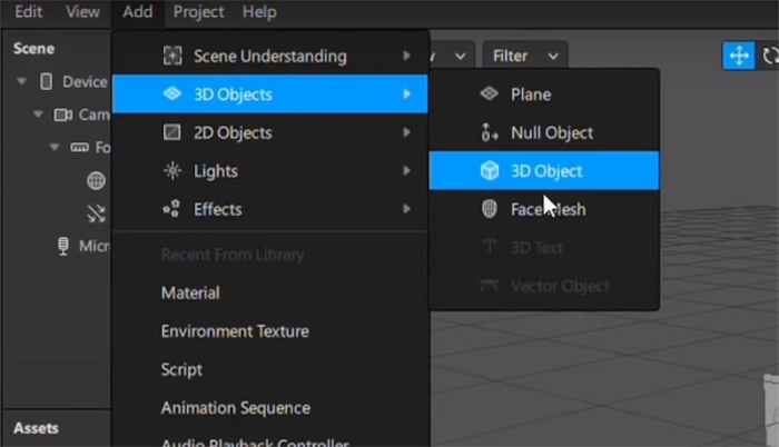 Chọn thẻ Add, sau đó chọn 3D Objects rồi chọn 3D Object.