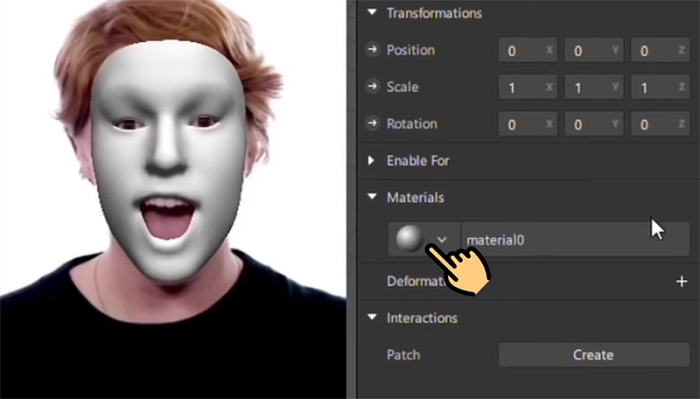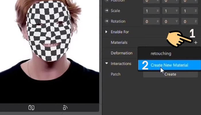Ở tab retouch bên phải, tại mục Materials, bạn hãy chọn dấu + rồi bấm vào Create new material.