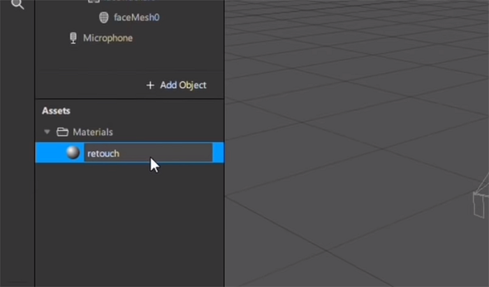 Ở tab bên trái, hãy đặt tên mục phía dưới Materials là Retouch.