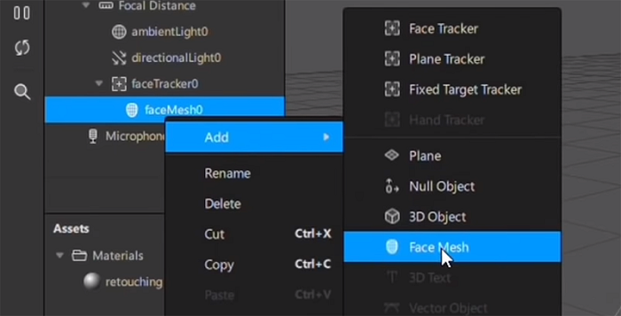 Ở tab bên trái, bạn hãy chọn faceMesh0, sau đó chọn Add rồi bấm vào Face Mesh.