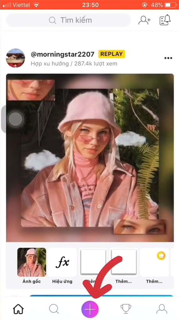Tiếp theo, bạn tải và mở ứng dụng PicsArt trên điện thoại, rồi nhấn dấu + để bắt đầu tạo filter.