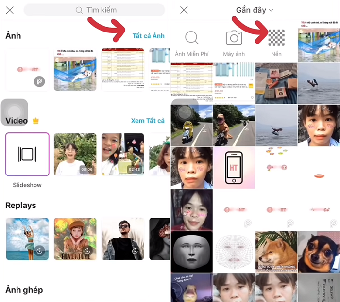 Nhấn chọn mục Tất cả ảnh rồi bấm vào Nền.