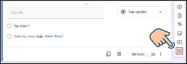 Bước 6: Nếu biểu mẫu có nhiều phần, như phần 1, phần 2, hãy chọn biểu tượng hai hình chữ nhật ở góc phải để chia biểu mẫu thành các phần.