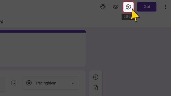Bước 1: Trên biểu mẫu đã tạo, chọn biểu tượng “Cài đặt”.