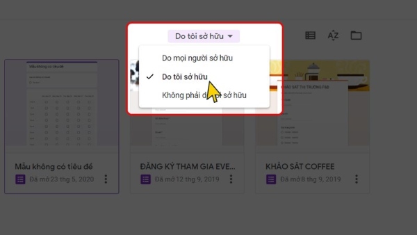 Bước 2: Để lọc ra những biểu mẫu người dùng đã tạo, bạn chọn “Do tôi sở hữu”.