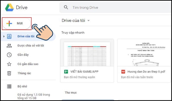 Bước 1: Trước tiên, mở Google Drive và chọn “Mới”.