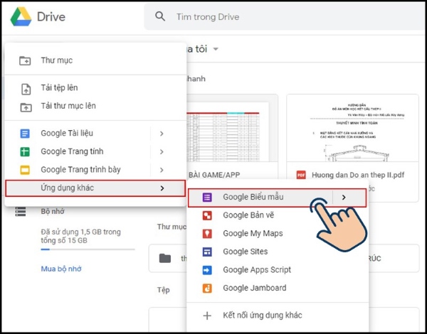 Bước 2: Tiếp tục, trong phần “Ứng dụng khác”, chọn “Google Biểu mẫu”.