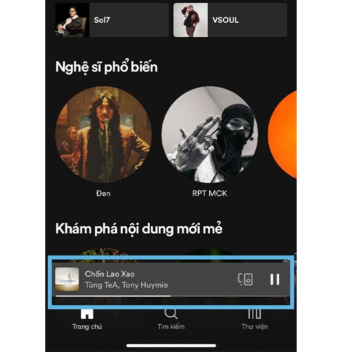 Bước 2: Phía dưới của màn hình hiện lên bài hát đang phát. Bạn nhấn vào thanh đang phát này.