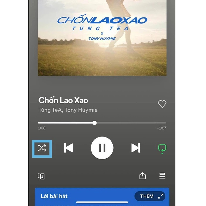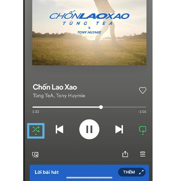 Bước 4: Hình mũi tên giao nhau đó là nút trộn bài. Nếu mũi tên này màu xanh lá cây có nghĩa chế độ phát ngẫu nhiên đang bật. Bạn nhấn vào một lần nữa để nút chuyển sang màu trắng. Làm như vậy là tắt được chế độ phát ngẫu nhiên.