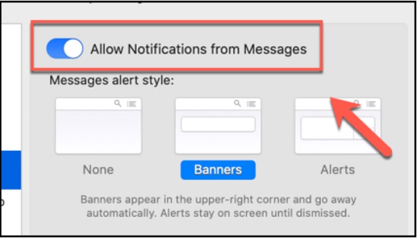 Bước 4: Quan sát bên phải các bạn có thể cài đặt hiển thị thông báo bằng cách chọn mục nằm dưới “Messages Alert Style”.