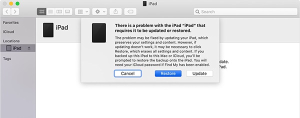 Sau khi người dùng đã đưa iPad về chế độ Recovery, màn hình trên máy tính sẽ xuất hiện thông báo như sau: