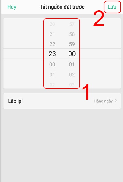 Cuối cùng, bạn có thể thiết lập thời gian tắt thiết bị theo ý muốn và nhấn Lưu để hoàn tất.