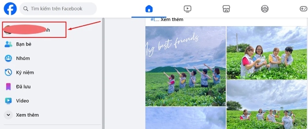 Bước 2: Nhấn vào tên của bạn hoặc hình ảnh đại diện tại góc trên bên trái trang chính để truy cập trang cá nhân Facebook của bạn.