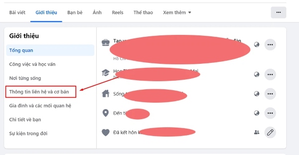 Bước 4: Trong phần “Giới thiệu”, bạn chọn vào “Thông tin liên hệ và cơ bản” để mở danh sách thông tin cá nhân của mình.