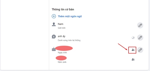 Bước 5: Tìm tới mục “Thông tin cơ bản” và tìm kiếm “Ngày sinh”. Bên cạnh thông tin ngày sinh, bạn nhấn vào biểu tượng cạnh hình chiếc bút để chỉnh sửa.