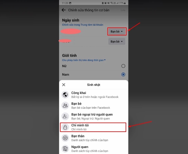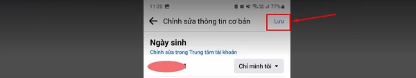 Bước 6: Sau khi hoàn thành thiết lập quyền riêng tư cho ngày sinh, bạn nhấn vào nút “Lưu” để xác nhận lưu thay đổi.