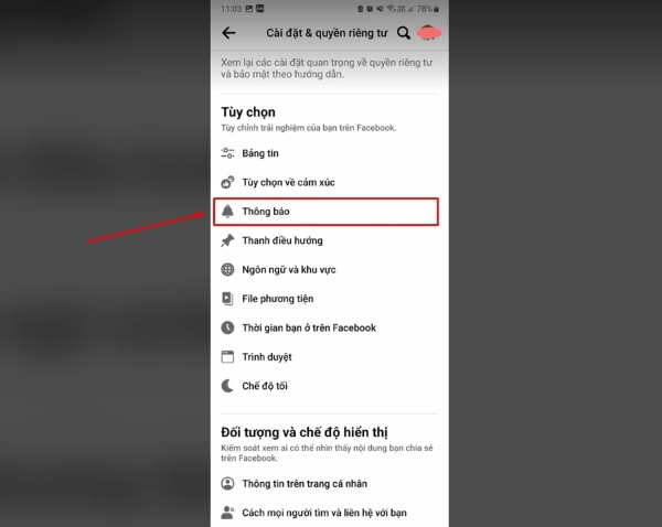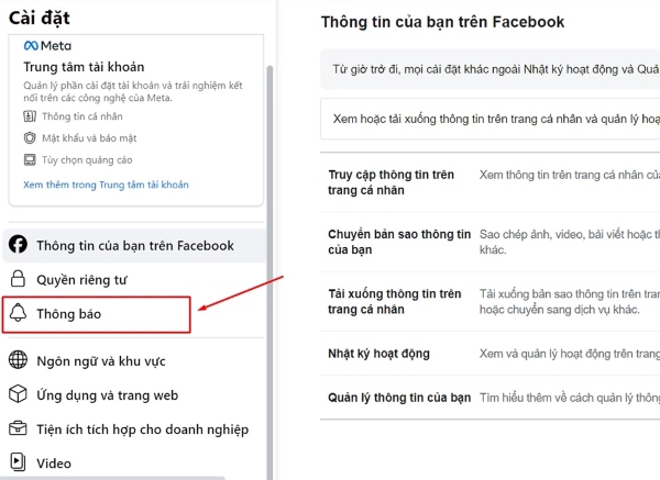 Bước 5: Trên danh sách bên trái, bạn tìm và nhấn chọn vào “Thông báo”.