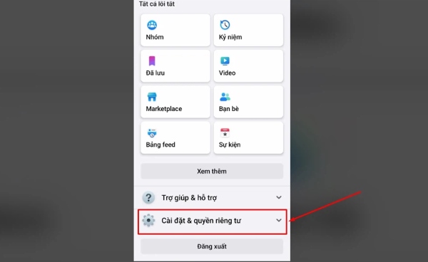 Bước 3: Tìm và nhấn chọn vào “Cài đặt và quyền riêng tư”.