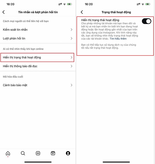 Cách tắt trạng thái online trên Instagram