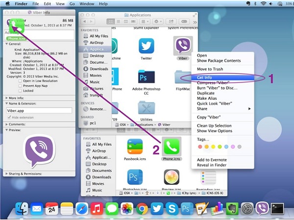 Bạn có thể tải tập tin (*. Icns) ở trên mạng theo chủ đề và lựa chọn chúng để thay thế cho các icon sẵn có của ứng dụng.