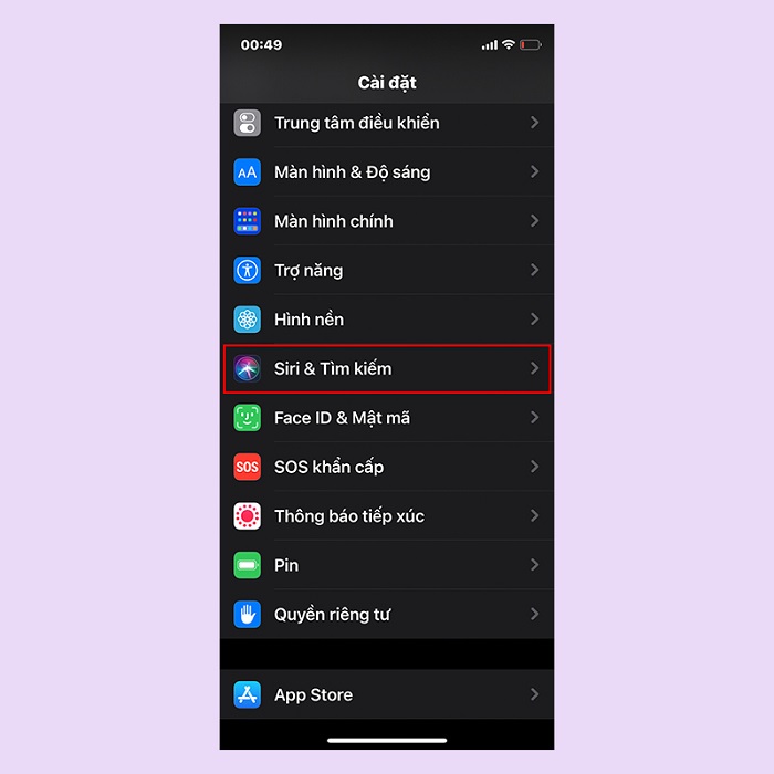 Bước 1: Truy cập vào Cài đặt, sau đó chọn mục Siri & Tìm kiếm.