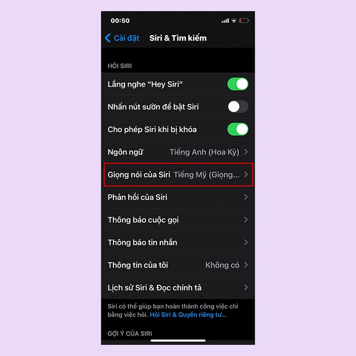 Bước 2: Truy cập vào mục Giọng nói Siri.