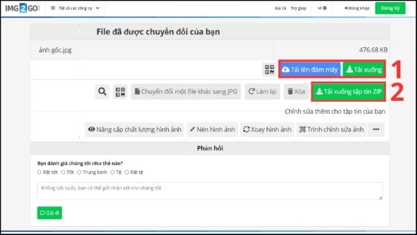 Bước 4: Chọn Hình thức lưu trữ hình ảnh sau khi thay đổi là Tải xuống hoặc Tải lên dịch vụ lưu trữ đám mây hoặc Tải xuống tập tin ZIP.