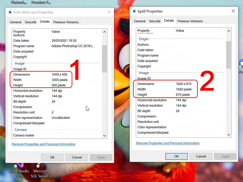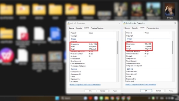 Sau khi thành công chỉnh sửa kích thước hình ảnh theo các bước hướng dẫn trên đây, bạn có thể chọn mục Properties của hình ảnh để xem các thông số đã được thay đổi.