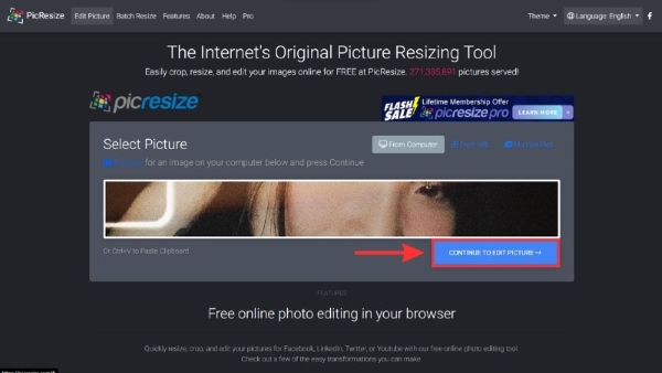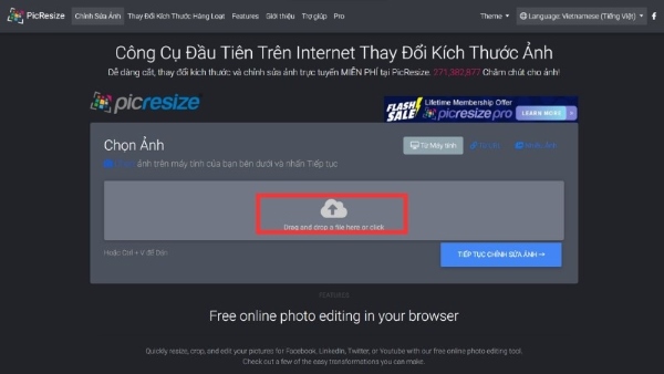 Bước 1: Bạn truy cập trang web picresize.com > chọn vào Ảnh cần chỉnh lên.