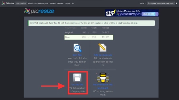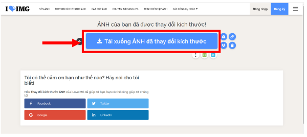 Bước 5: Sau khi hoàn tất chỉnh sửa, bạn chọn Tải xuống ẢNH đã thay đổi kích thước về máy hoặc có thể chọn lưu ảnh trên Dropbox hay Google Drive. Hình ảnh sau khi chỉnh sửa có kích thước nhỏ hơn 50% so với hình ảnh gốc.