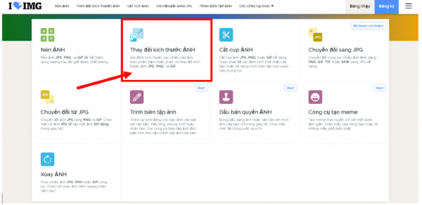 Bước 1: Truy cập trang web iloveimg.com > chọn mục thay đổi kích thước ảnh.