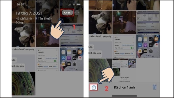 Bước 5: Chọn Ảnh > chọn những hình ảnh muốn thay đổi kích thước > chọn biếu tượng chia sẻ ở góc dưới.