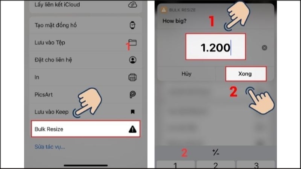 Bước 6: Kéo xuống chọn mục Bulk Resize (thay đổi kích thước ảnh) > nhập kích thước hình ảnh bạn muốn và nhận về kết quả tại Album ảnh.
