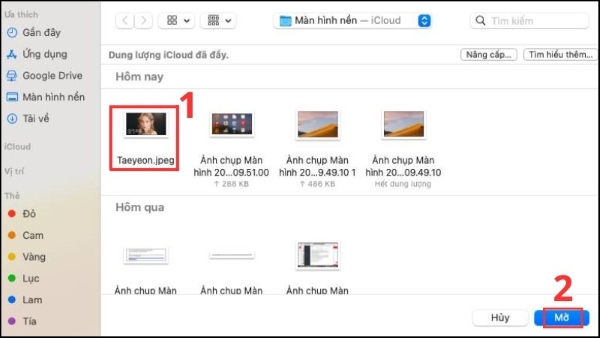 Bước 2: Chọn hình ảnh cần tải lên > chọn Open.