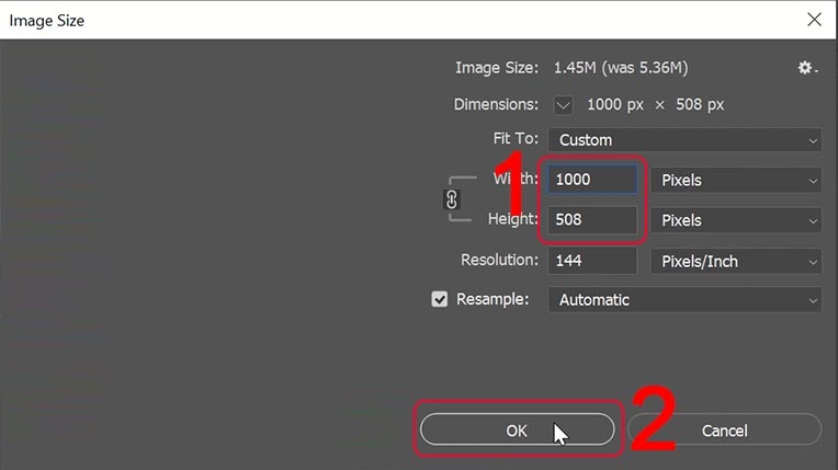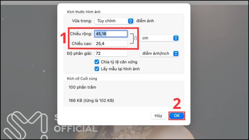 Bước 4: Chọn kích thước hình ảnh muốn thay đổi > nhấn OK.