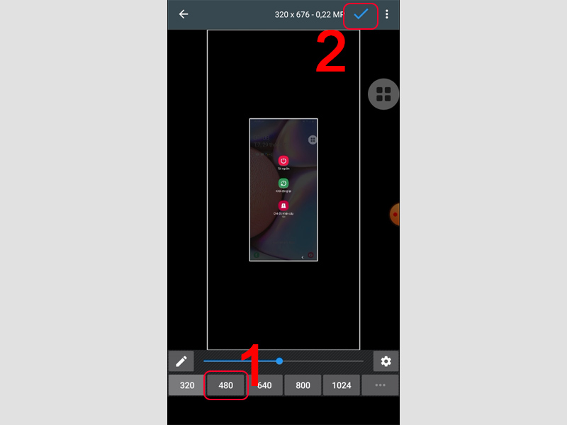 Bước 3: Chọn tỉ lệ hình ảnh cần đổi > chọn dấu tích để hoàn tất.