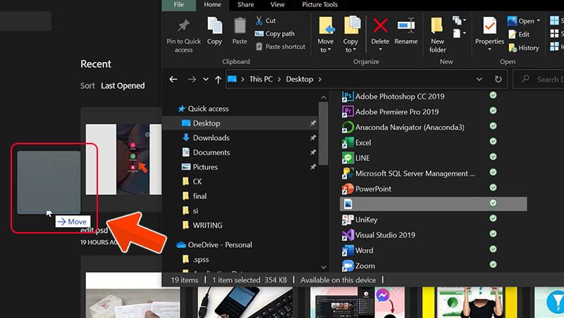 Bước 2: Mở ứng dụng Photoshop lên > kéo thả hình ảnh muốn thay đổi kích thước vào giao diện của ứng dụng Photoshop.